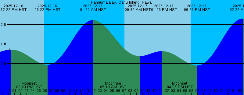 2025-12-16 04:16 AM HST Moonrise 2025-12-16 07:01 AM HST Sunrise 2025-12-16 08:52 AM HST 0.49 feet Low Tide 2025-12-16 12:22 PM HST 0.71 feet High Tide 2025-12-16 03:23 PM HST Moonset 2025-12-16 05:51 PM HST Sunset 2025-12-16 06:22 PM HST -0.06 feet Low Tide 2025-12-17 01:50 AM HST 2.23 feet High Tide 2025-12-17 05:10 AM HST Moonrise 2025-12-17 07:01 AM HST Sunrise 2025-12-17 09:32 AM HST 0.38 feet Low Tide 2025-12-17 01:05 PM HST 0.63 feet High Tide 2025-12-17 04:05 PM HST Moonset 2025-12-17 05:52 PM HST Sunset 2025-12-17 06:53 PM HST -0.10 feet Low Tide 2025-12-18 02:22 AM HST 2.30 feet High Tide 2025-12-18 06:04 AM HST Moonrise 2025-12-18 07:02 AM HST Sunrise 2025-12-18 10:07 AM HST 0.30 feet Low Tide 2025-12-18 01:46 PM HST 0.59 feet High Tide 2025-12-18 04:52 PM HST Moonset 2025-12-18 05:52 PM HST Sunset 2025-12-18 07:26 PM HST -0.13 feet Low Tide 2025-12-19 02:56 AM HST 2.34 feet High Tide 2025-12-19 06:58 AM HST Moonrise 2025-12-19 07:03 AM HST Sunrise 2025-12-19 10:42 AM HST 0.25 feet Low Tide 2025-12-19 02:25 PM HST 0.56 feet High Tide 2025-12-19 03:44 PM HST New Moon 2025-12-19 05:43 PM HST Moonset 2025-12-19 05:53 PM HST Sunset 2025-12-19 08:01 PM HST -0.15 feet Low Tide |