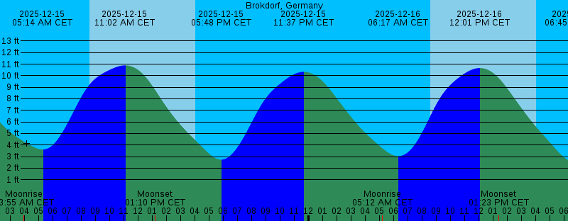 2025-12-15 08:34 AM CET Sunrise 2025-12-15 11:02 AM CET 10.89 feet High Tide 2025-12-15 01:10 PM CET Moonset 2025-12-15 04:01 PM CET Sunset 2025-12-15 05:48 PM CET 2.74 feet Low Tide 2025-12-15 11:37 PM CET 10.33 feet High Tide 2025-12-16 05:12 AM CET Moonrise 2025-12-16 06:17 AM CET 3.04 feet Low Tide 2025-12-16 08:35 AM CET Sunrise 2025-12-16 12:01 PM CET 10.66 feet High Tide 2025-12-16 01:23 PM CET Moonset 2025-12-16 04:01 PM CET Sunset 2025-12-16 06:45 PM CET 2.51 feet Low Tide 2025-12-17 12:29 AM CET 10.49 feet High Tide 2025-12-17 06:28 AM CET Moonrise 2025-12-17 07:17 AM CET 2.58 feet Low Tide 2025-12-17 08:36 AM CET Sunrise 2025-12-17 12:53 PM CET 10.42 feet High Tide 2025-12-17 01:41 PM CET Moonset 2025-12-17 04:01 PM CET Sunset 2025-12-17 07:39 PM CET 2.49 feet Low Tide 2025-12-18 01:13 AM CET 10.65 feet High Tide 2025-12-18 07:42 AM CET Moonrise 2025-12-18 08:10 AM CET 2.36 feet Low Tide 2025-12-18 08:37 AM CET Sunrise 2025-12-18 01:37 PM CET 10.32 feet High Tide 2025-12-18 02:07 PM CET Moonset 2025-12-18 04:01 PM CET Sunset 2025-12-18 08:26 PM CET 2.61 feet Low Tide 2025-12-19 01:53 AM CET 10.95 feet High Tide |